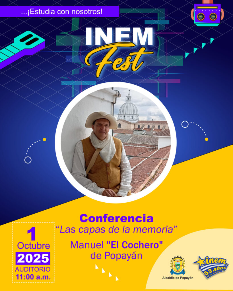 | Manuel "El Cochero" de Popayán: las capas de la memoria. | Promueve la recuperación de la memoria a partir de procesos investigativos y artísticos, que revitalizan la identidad del territorio y el patrimonio cultural. | 1 | 11:00 a.m. - 11:45 a.m. | Alejandro Luna |